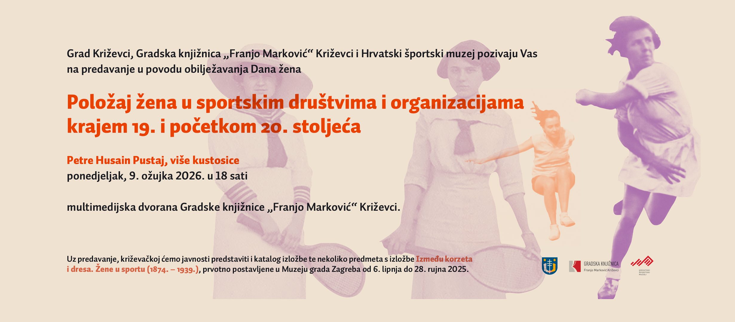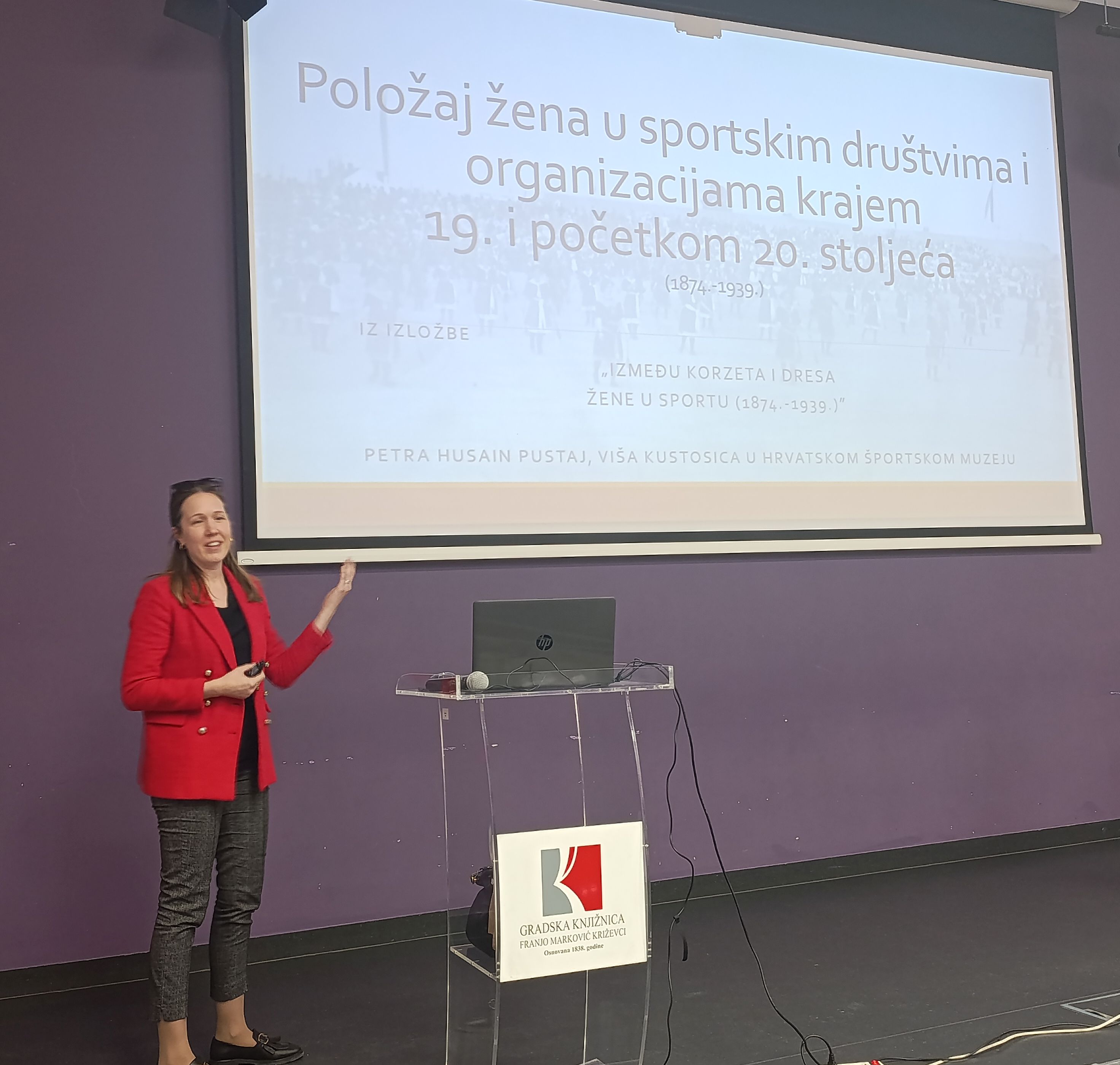 Hrvatski športski muzej gostovao je 9. ožujka u Križevcima, gdje je u tamošnjoj Gradskoj knjižnici Franjo Marković viša kustosica Petra Husain Pustaj održala predavanje u povodu Međunarodnog dana žena. S obzirom na prigodu, govorila je o ženama u sportu, točnije njihovu položaju u sportskim društvima i organizacijama krajem 19. i početkom 20. stoljeća.